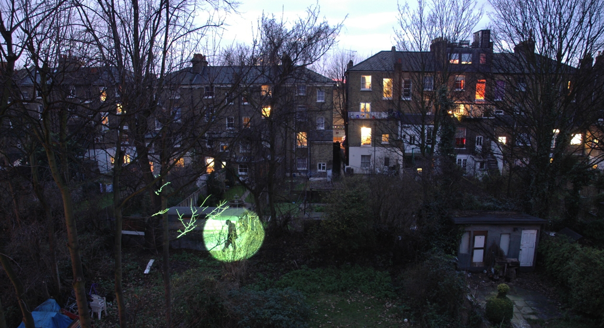 Films of local people, projected in negative onto Sunnyside Garden’s square suggested ghostlike entities moving through dead space. The work was installed without media attention; instead it was gradually discovered by the local community who, after spreading the word about their encounters with these shadows on the square, started generating local interest and curiosity.