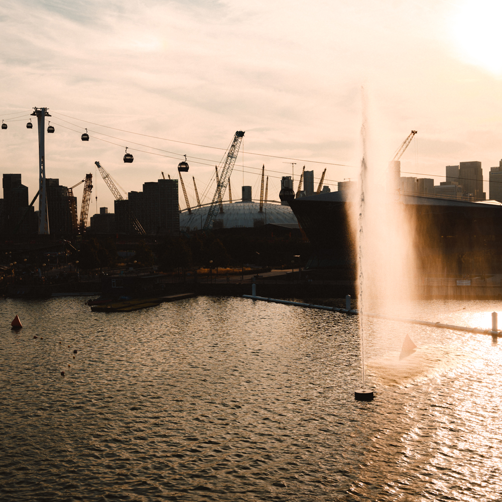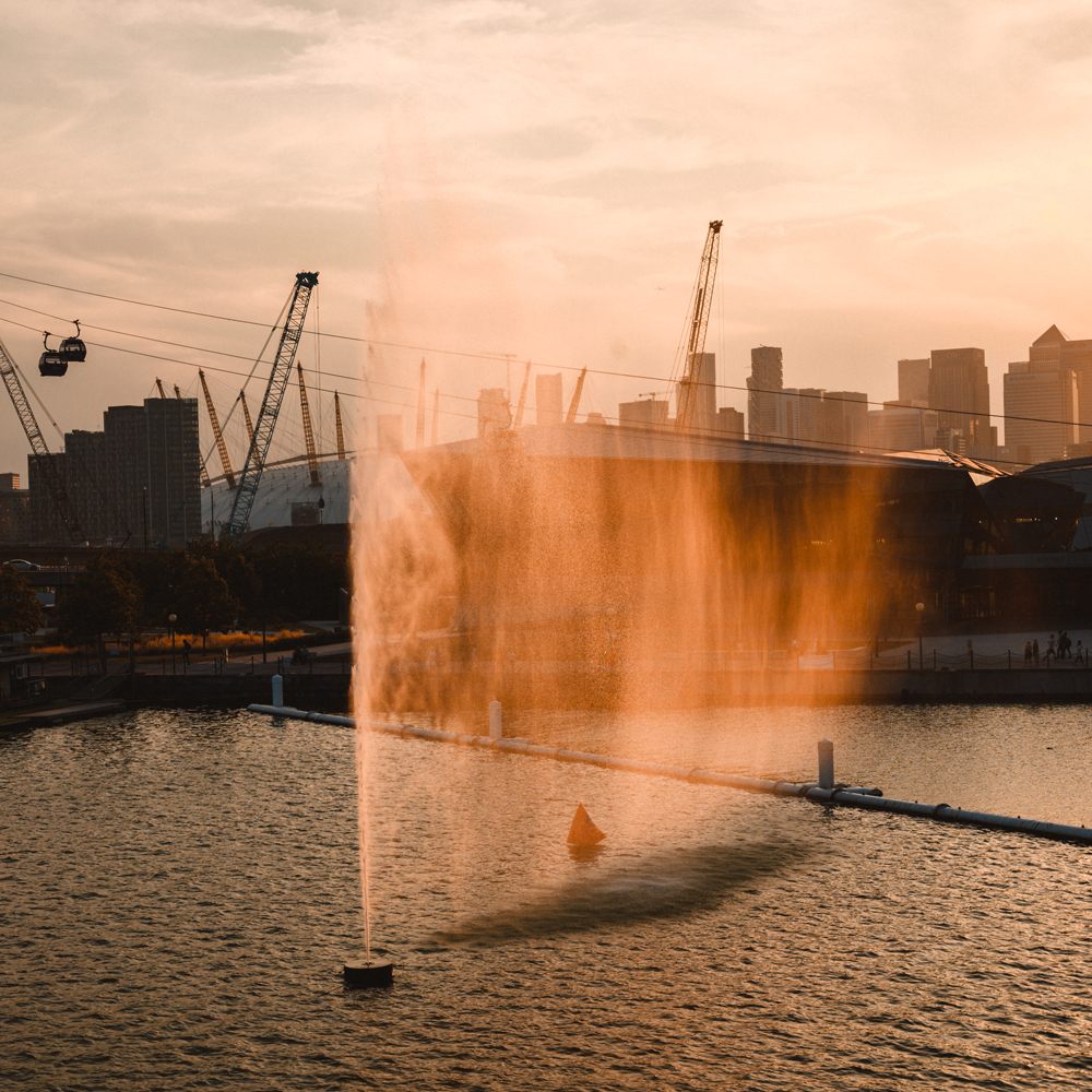 25 years after its original installation (in a small park in Birmingham), the geyser was witnessed again in East London's Royal Albert Docks. Located in the Royal Docks, it was viewable from the IFS Cloud Cable Car, the dockside near Canning Town and the streets and nearby buildings around the new City Hall. As one of the key commissions for the London-wide Thames Festival cultural program, this represented a dramatic return for one of Cotterrell's first public projects.