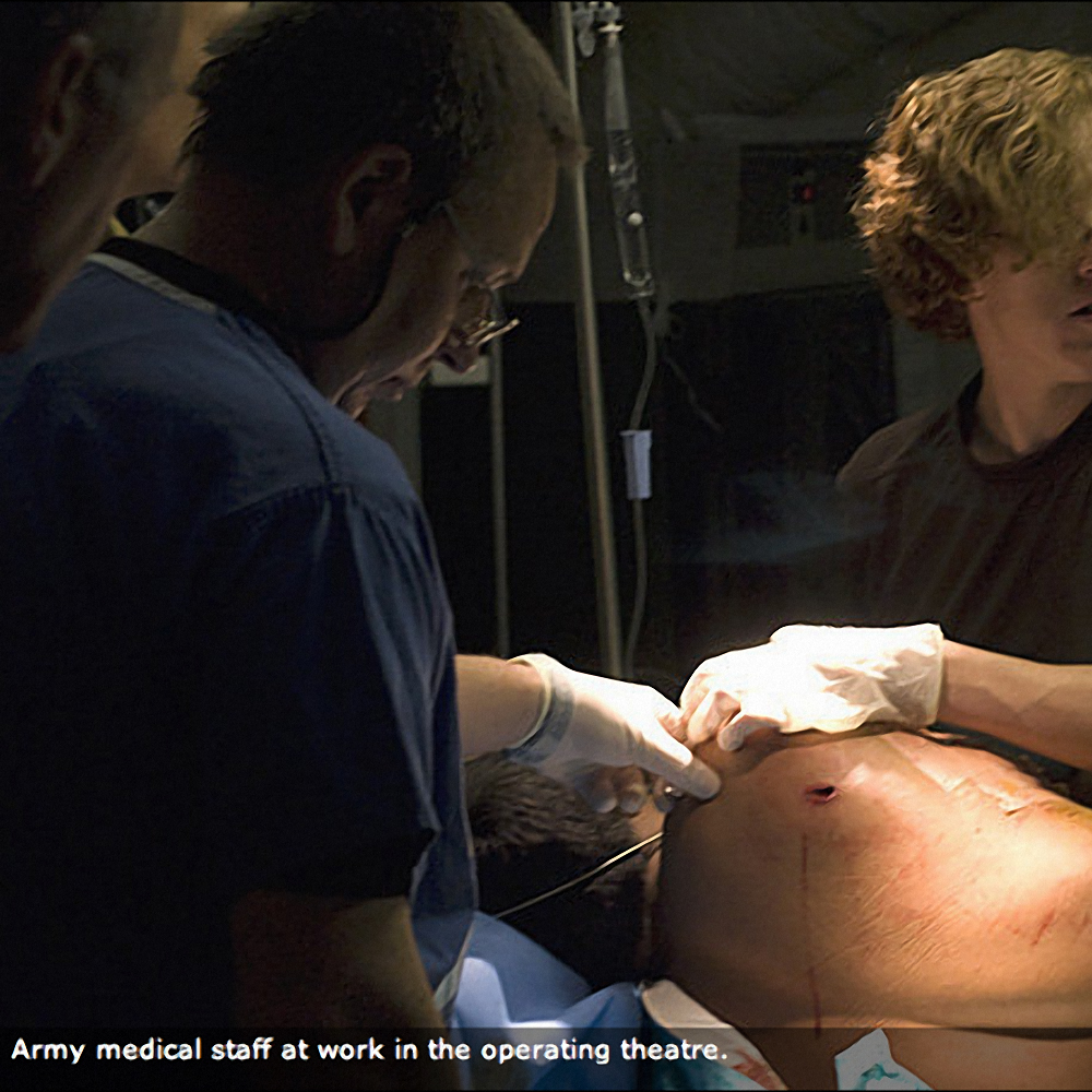 When British soldiers fighting in Afghanistan are injured, they get taken to the British military's field hospital at Camp Bastion in Helmand province. Artist David Cotterrell spent a month there, recording what he observed for the Wellcome Collection's exhibition War and Medicine.