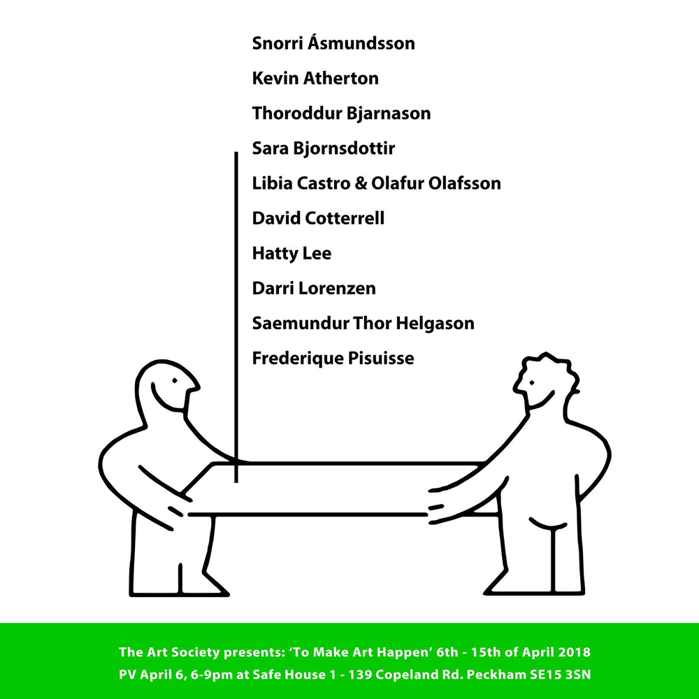 'To make art happen' is the first in series of three international art exhibitions with twenty-seven artists from seven countries happening at Safe House 1, 139 Copeland Road Peckham London in 2018-2019. Private view at 6-9 Friday April 6th.