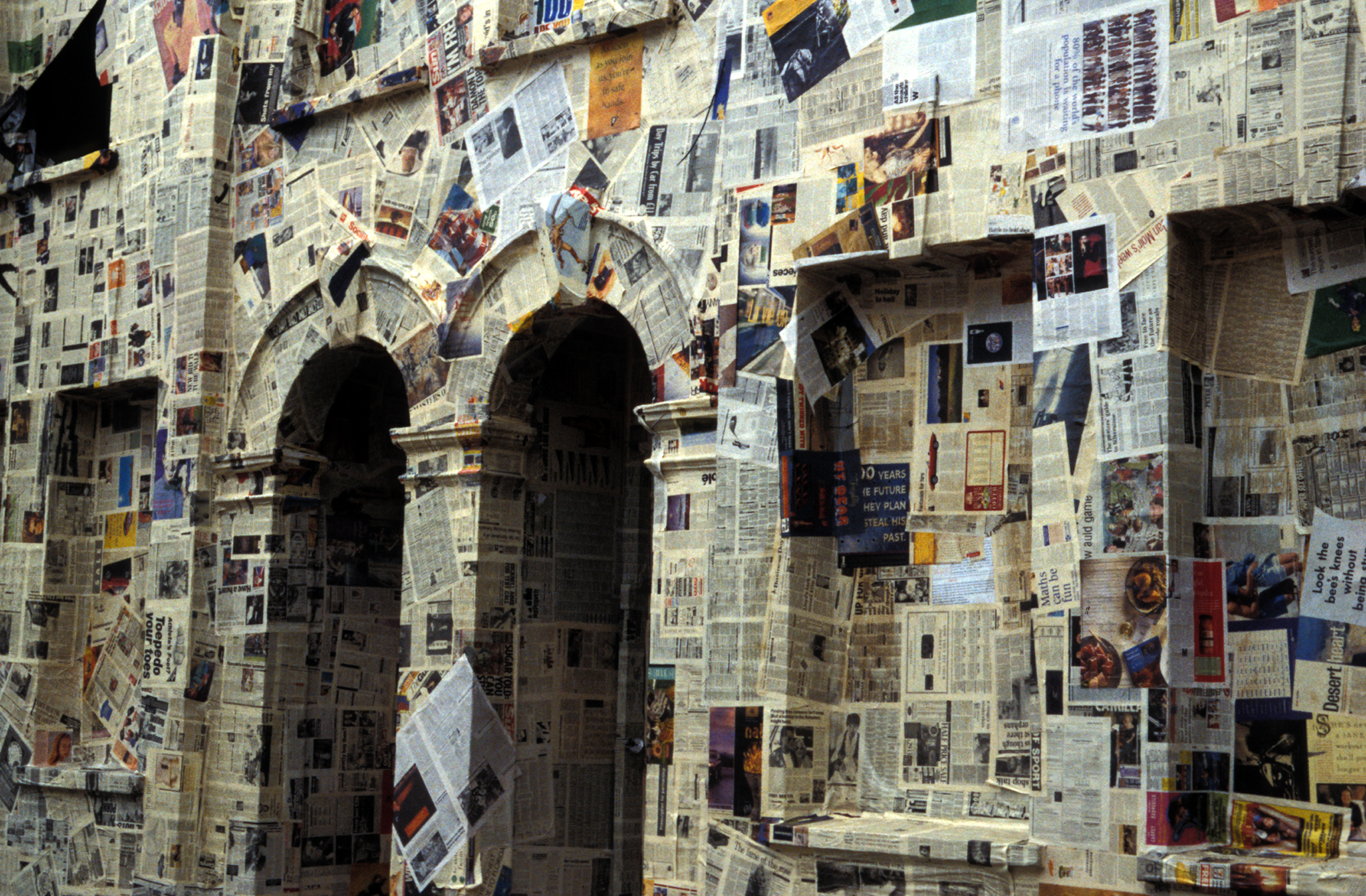 A public intervention whereby two derelict Victorian houses functioned as the canvas for a newspaper collage