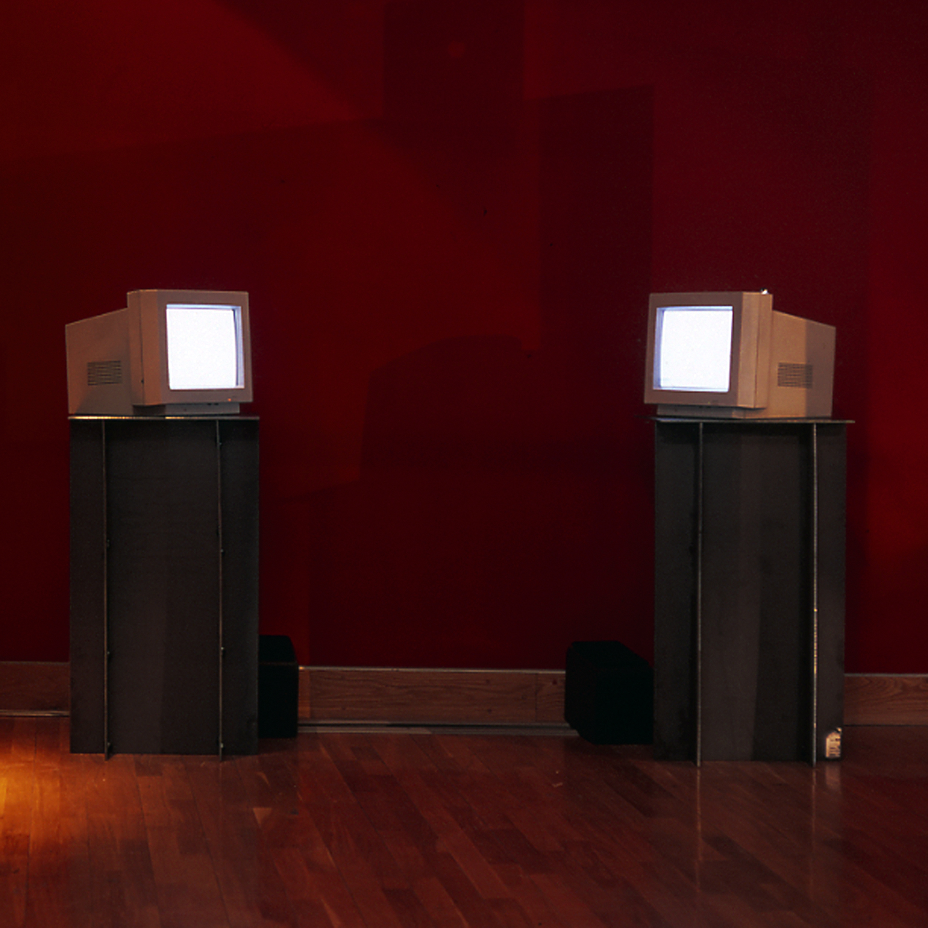 TDS is a computer installation using software which was developed for ELIZA, a self generating speech programme that responds to the user’s input. ELIZA is programmed according to a rhetorical logic tree that responds to a user’s keywords in order to generate an appropriate response. The programme has its limitations: it is purely responsive and cannot develop an inner logic of its own. Instead of creating a user/computer set up, Cotterrell chose to generate a Rogerian conversation between two computers. The work was made and exhibited in 2001, with Cotterrell reworking the original ELIZA code to create a more subversive use of the programme. TDS reflects on ELIZA’s artifice: able to dispense the belief that one is in conversation with an intelligent being, the illusion is quickly broken down to reveal the flaws in its script. By replacing the human user with a computer, a double rhetoric was created in which both machines attempted to analyse and question each other, which resulted in the complete breakdown of conversation in favour of mutual verbal abuse. The work is a precursor to The Debating Society