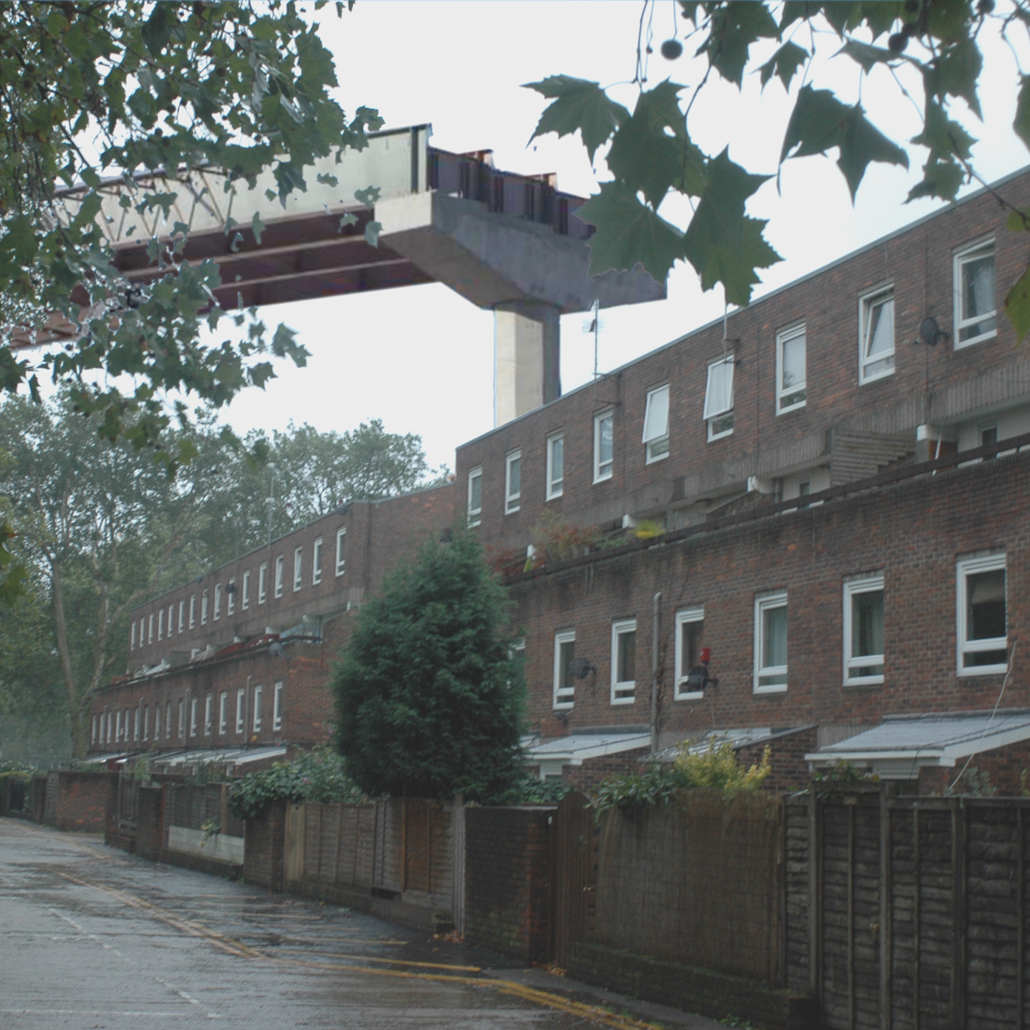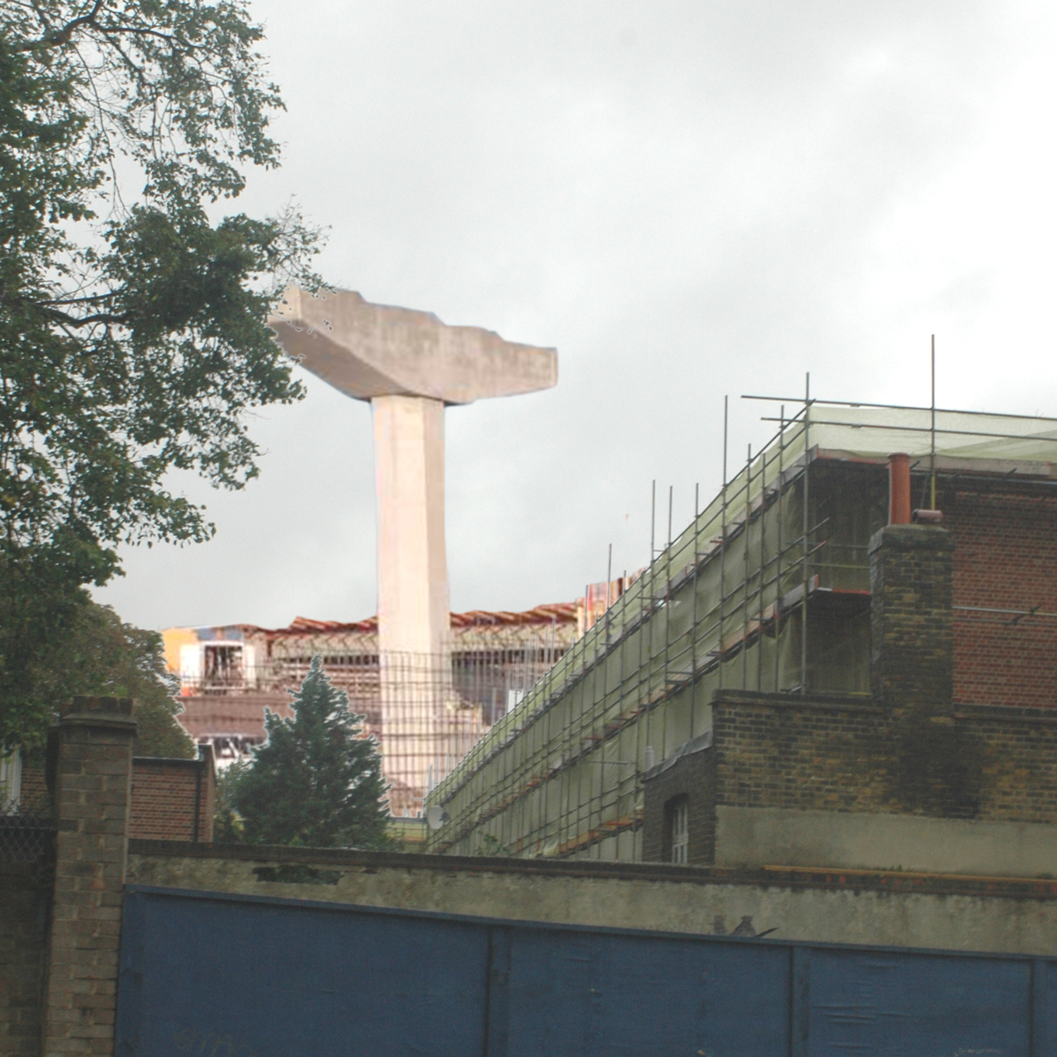 Manifested through hoardings, a mock visitor’s centre, consultation documents, housing plans and various architect’s models, the scheme’s rationale is to expose decisions taken in the Masterplanning process. Those who live and/or work within areas of potential or imminent regeneration are not always privy to the machinations of centralised government or the quangos, developers and architects whose decisions will affect their lives. While the Hackney Flyover will never be built, evidence of its supporting piers would be apparent at one or more locations along the artist’s proposed route.