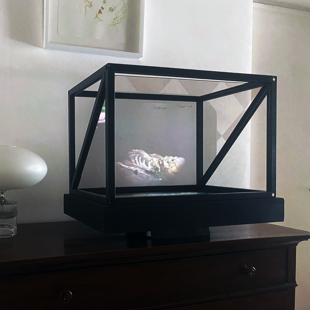 Materials:8-channel video presented on Alioscopy Lenticular Screens and viewed though custom-built pepper’s ghost vitrines.